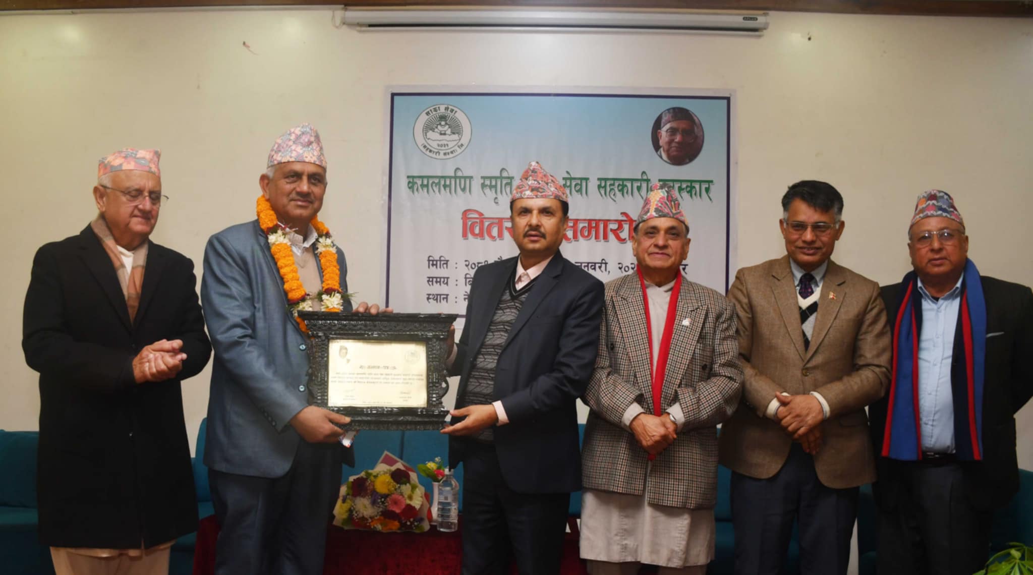 पोखरा, २८ पुस । साझा सेवाको ४० औँ साधारण सभा तथा कमलमणि स्मृति साझा सेवा सहकारी पुरस्कार वितरण समारोह शनिबार काठमाडौंको नेपालहाउस, हात्तीसारमा सम्पन्न भयो। सहकारी अभियानलाई प्रवर्द्धन गर्दै राष्ट्रिय अर्थतन्त्रमा योगदान पु¥याएको भन्दै यो वर्षको कमलमणि स्मृति साझा सेवा सहकारी पुरस्कार सहकारी अभियन्ता मिनराज कँडेललाई प्रदान गरिएको छ।