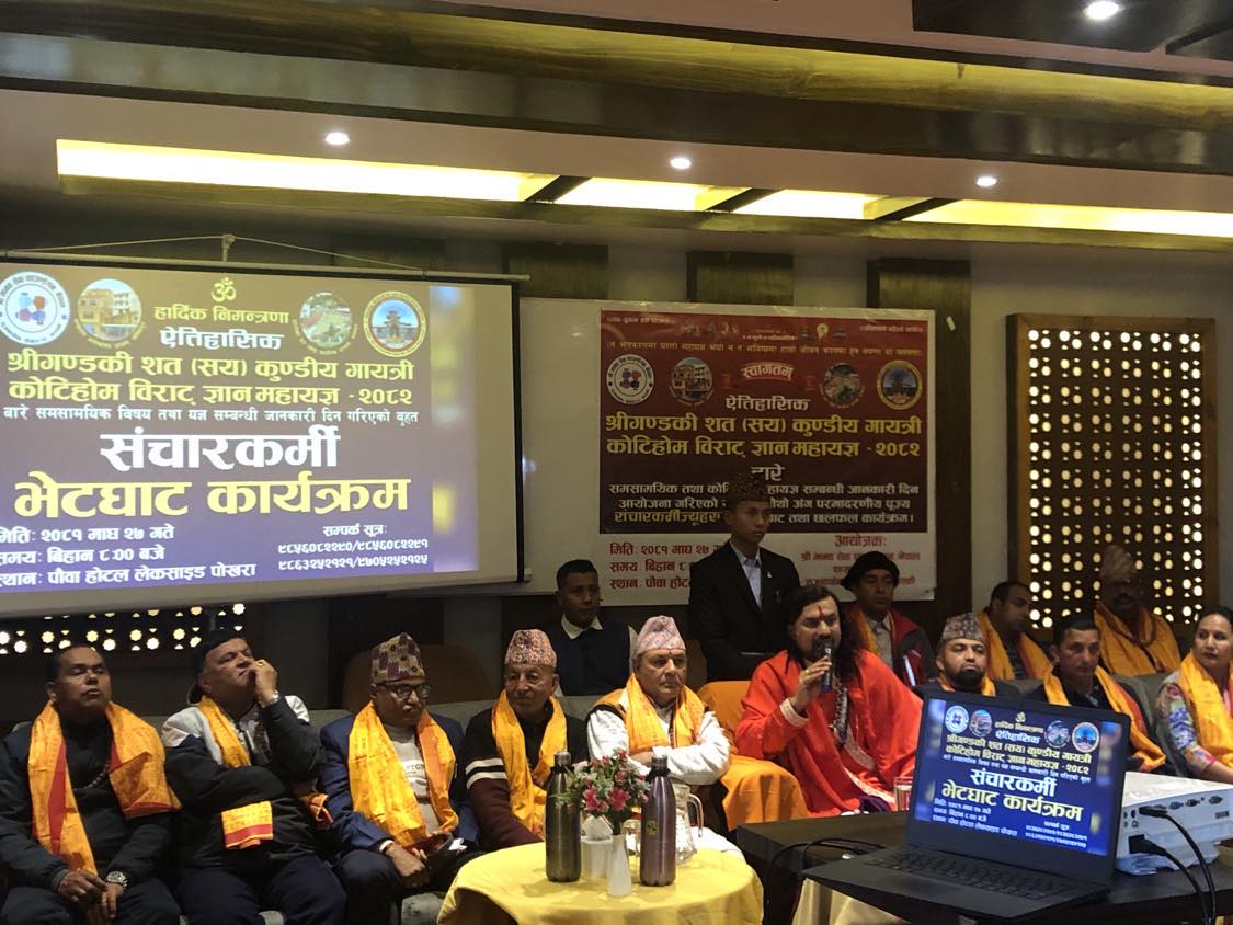 पोखरा, ३ फागुन । पोखराको लेकसाइडमा आयोजना गरिने भनिएको ‘श्री गण्डकी शत कुण्डीय गायत्री कोटिहोम विराट ज्ञान महायज्ञ’ सञ्चालनमा पोखरा महानगरपालिकाले रोक लगाएपछि उत्पन्न विवाद झन् चर्कँदै गएको छ। यसैबीच, उच्च अदालत पोखराले महायज्ञ सञ्चालनमा कुनै अवरोध नगर्न निर्देशन दिएको छ।