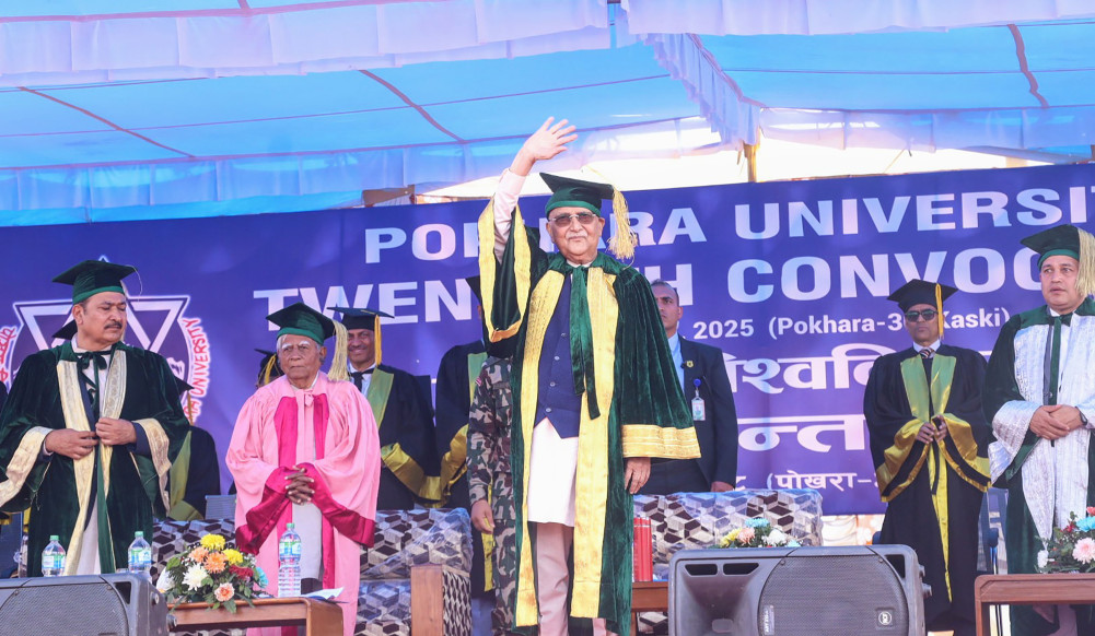 पोखरा, ९ फागुन। प्रधानमन्त्री केपी शर्मा ओलीले पोखरा विश्वविद्यालयका दीक्षित विद्यार्थीलाई प्राप्त ज्ञानलाई इमानदारीपूर्वक देशको लागि प्रयोग गर्न आग्रह गरेका छन्। उनले कास्कीको ढुंगेपाटनमा आयोजित २० औं दिक्षान्त समारोहमा विद्यार्थीहरूलाई आत्मविश्वासका साथ सकारात्मक काम गर्न प्रोत्साहित गर्दै, इमानदारीलाई सफलता प्राप्त गर्ने एक मात्र उपायको रूपमा प्रस्तुत गरे।