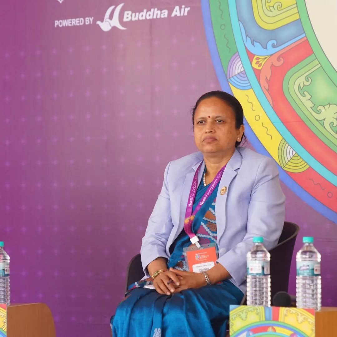 May be an image of 1 person, dais and text that says 'ENTS PAL ERATURE STIVAL IL n TOURISM CAPITAL OF Buddha Air'