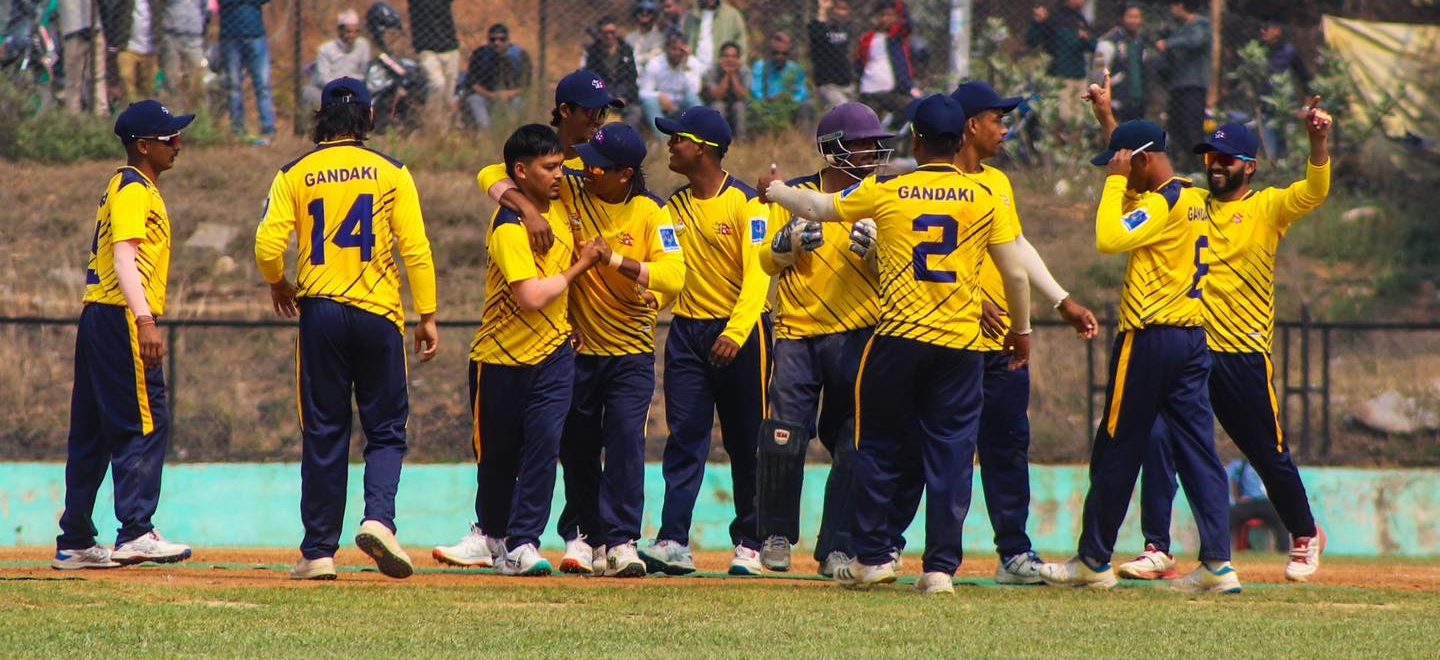 सामान्य लक्ष्य पछ्याएको गण्डकी प्रदेशका सुरूवाती ब्याटरहरू आउट भएपछि दबाबमा परेका बेला दीपक डुम्रे र सुजन गौतमले सम्हालिएर पारी उकासेर २९ दशमलव १ ओभरमा टिमलाई जित दिलाए। बाह्र ओभरको खेल सकिँदा गण्डकी प्रदेशले २२ रनमा ६ विकेट गुमाइसकेको थियो। त्यसपछि दीपक र सुजनले शानदार साझेदारी गर्दै नतिजा आफ्नो पक्षमा पारे।