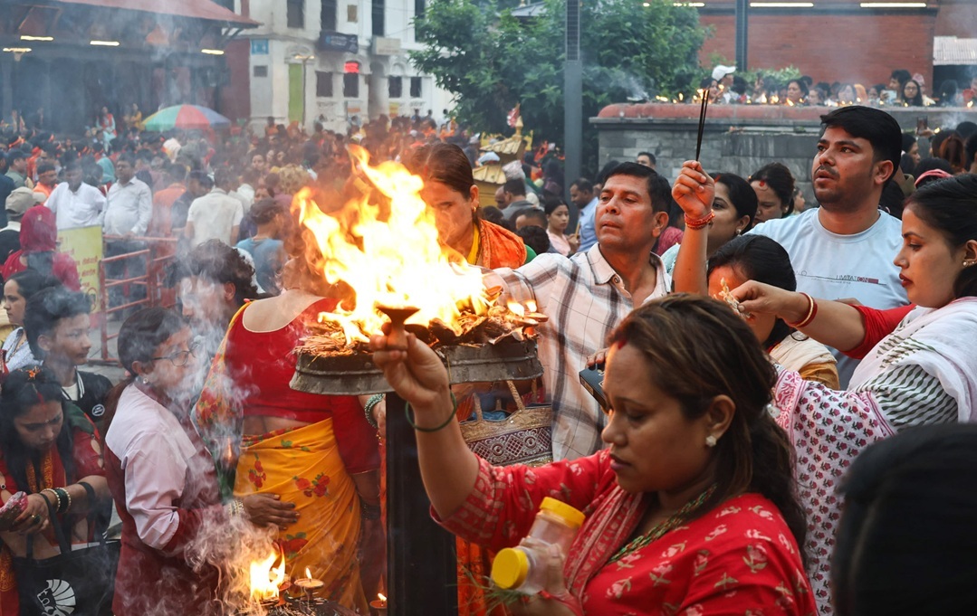 Pokhara, 21 July: The first Monday of Shrawan month today has witnessed a significant gathering of devotees at Pashupatinath Temple in Kathmandu and other Shiva temples across the country since early morning. Shrawan is considered the sacred month of Lord Shiva, and Monday is his preferred day, leading to a large influx of worshippers and devotees at Pashupatinath for darshan and prayers.